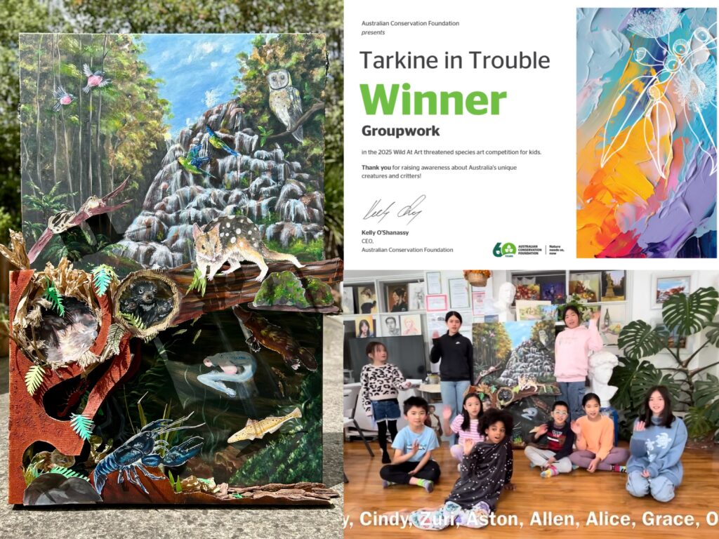 Our group work ‘A Normal Day in the Ocean’ won first place in “Wild At Art”competition 2023. It took 31 students 4 weeks to complete this amazing work. We are very proud of the effort, progress and the result considering it’s one of the 7,000 submissions of high quality art works. This picture will be exhibited in 2024 Wild at Art exhibition.